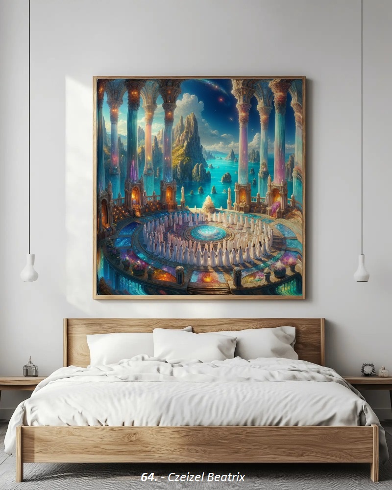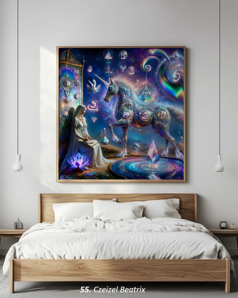 Uvádzame tu len niekoľko ilustrácií, v plnom svetle a farbách sú v novom vydaní knihy Hviezdne rody (alebo, ako sme uviedli vyššie, ako ilustrácie pri našich meditáciách). Farby a odtiene sú na obrazoch vytlačených na plátne oveľa žiarivejšie a živšie, ako tu zobrazené mock-up vizualizácie v interiéri – tie slúžia naozaj len ako ilustračné foto. Tvar obrazov je však reálny (obrazy, ktoré na ilustráciách vidíte ako štvorcové, sú skutočne štvorcové, a obdĺžnikové sú tiež tak, ako na ilustráciách: buď na šírku, alebo na výšku).